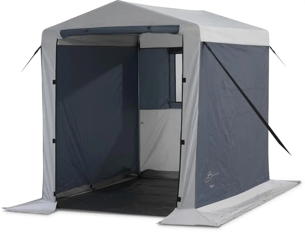 De schuurtent voorkomt condensvorming dankzij de ventilatie in de nok en het horraam aan de achterkant. Deze zorgt ook voor luchtcirculatie. De Faro Schuurtent heeft een stevig verzinkt stalen 22/19 mm frame. Het dak en het kuipgrondzeil zijn gemaakt van PVC.