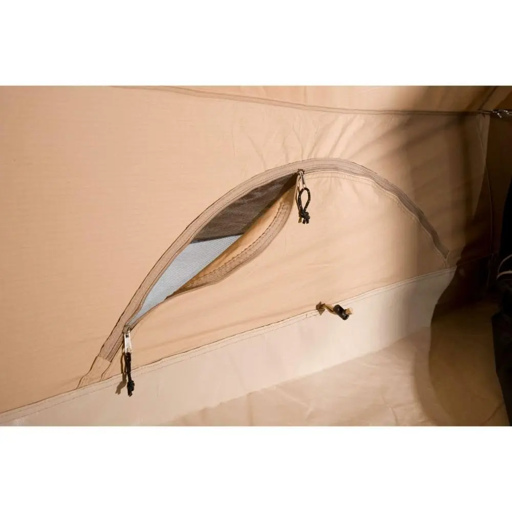 Met de Greenland 320 RSTC piramidetent heb je 2 maal 240×150 cm slaapruimte tot je beschikking. Genoeg om tijdens de vakantie met z’n vieren in te bivakkeren. De tent bestaat uit een ripstop katoenen tentdoek dat goed ademend is vervaardigd. Het Ground Air Control systeem zorgt ervoor dat er een permanente ventilatie in de tent aanwezig is.