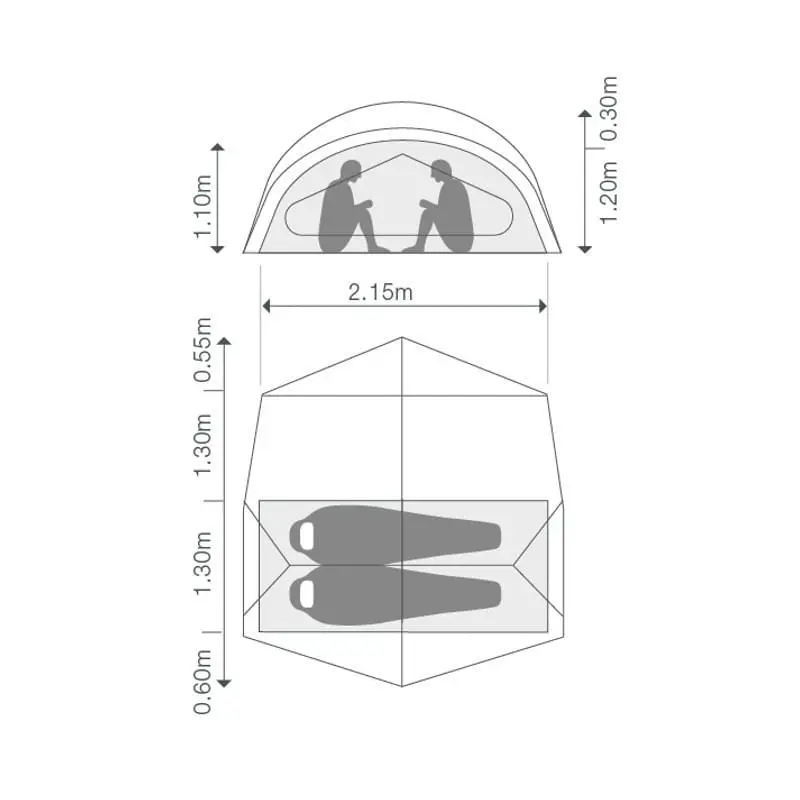In de binnentent van de Outer Space II is voldoende ruimte om 2 Exped LW slaapmatten te gebruiken of een enkele DUO slaapmat van Exped. Tassen en andere bagage kan je dan gemakkelijk kwijt onder de luifel. Deze is helemaal af te sluiten en de footprint loopt ook door tot onder de luifel. Deze luifel is met 150 cm hoog genoeg om comfortabel onder te zitten met kleine lichtgewicht stoeltjes zoals bijvoorbeeld de Helinox Chair One.