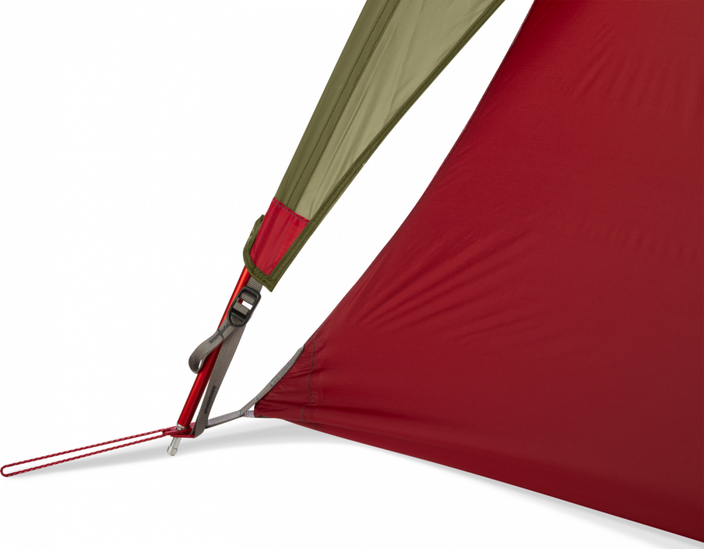 Om deze FreeLite 3 zo licht mogelijk te maken hebben ze bij MSR gebruik gemaakt van 15D ripstop nylon met de bekende DuraShield coating. Waterdicht en sterk. De FreeLite tenten zullen nooit een stormtent zijn dus probeer deze altijd beschut op te zetten. Ook is de tent niet vrijstaand. Dit heeft ermee te maken dat het frame maar 3-poten heeft. Zo zal je altijd alle haringen moeten gebruiken om de tent op te zetten, maar het ‘missen’ van de 4e poot scheelt wel een aanzienlijk gewicht.